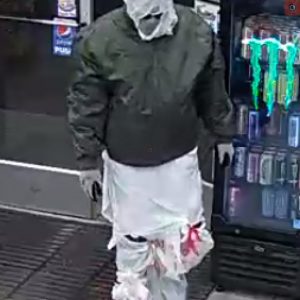 Police in Lower Southampton are hoping you can identify a robber who wrapped himself in a trash bag , He held up the Sunoco station on Street Road. Police got a good photo of his get up and hope that you can identify him. He likes to smoke cigarettes and might smell of vanilla from the trash bag. .