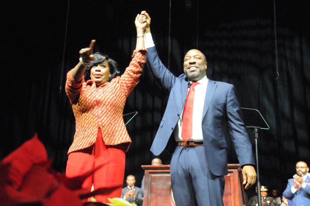 Council President Kenyatta Johnson had the honor of introducing Parker who was sworn in by Marcia L. Fudge, Housing Secretary. Before her remarks, Johnson grabbed Parker and the two went to center stage in an arm in arm salute.