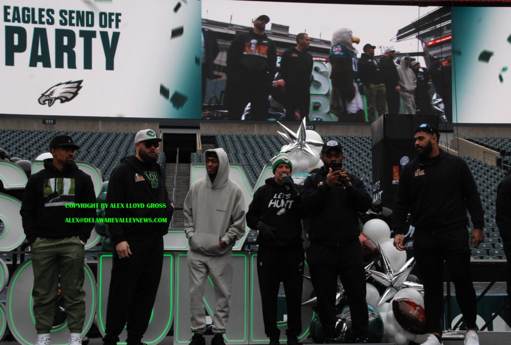 “Get ready for a parade down Broad Street,” Brandon Graham, Eagles defensive end said to the crowd. There were no long speeches. Some team members showed up, got the crowd pumped up and then the team left. left. They were on stage for less than five minutes.
