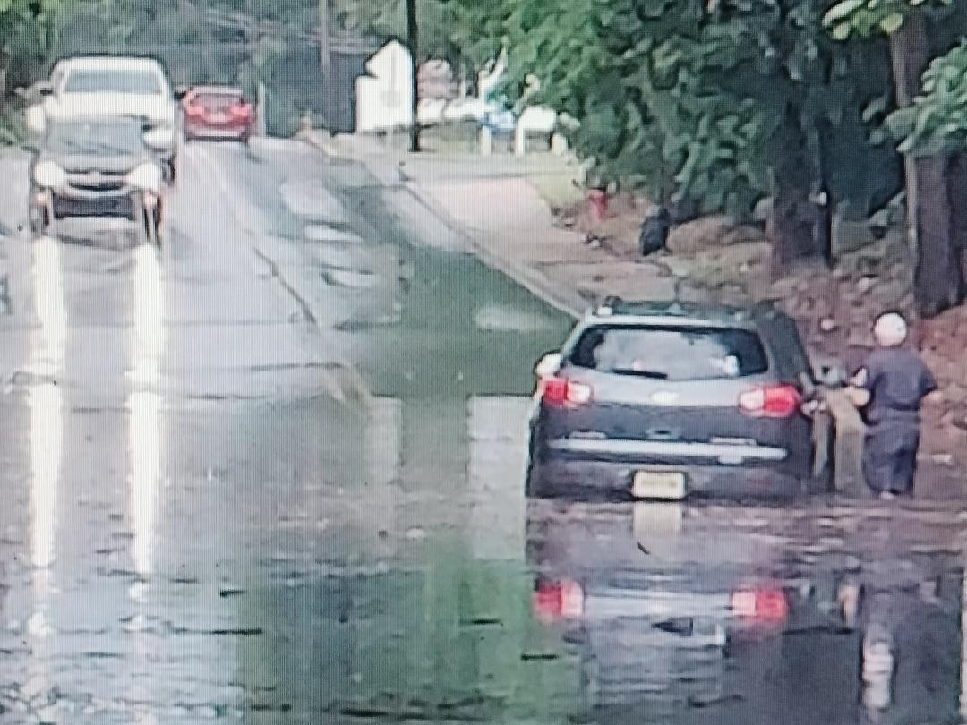 The sky turned a dark, menacing grey and little raindrops started to fall about 3:15 PM . These raindrops gave way to a torrential downpour that caused a motorist to get stuck on Station Avenue, under the bridge. He was not trapped in his vehicle, he just wanted to wait until the flood waters receded. Emergency personnel convinced him to vacate the car.