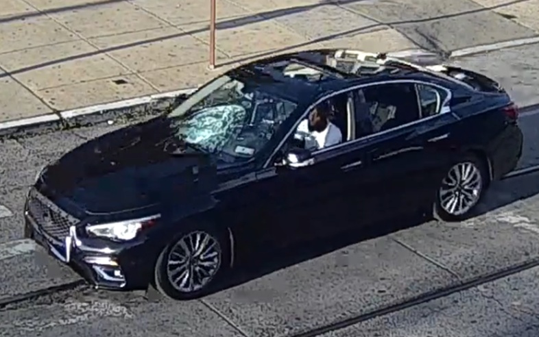 Instead of getting help, he stopped nearby at a pizza shop to discharge a passenger. He then drove away, at one point reversing down Lancaster Avenue. He drove a black Infinity with a paper Delaware tag. Police said that was the vehicle responsible.