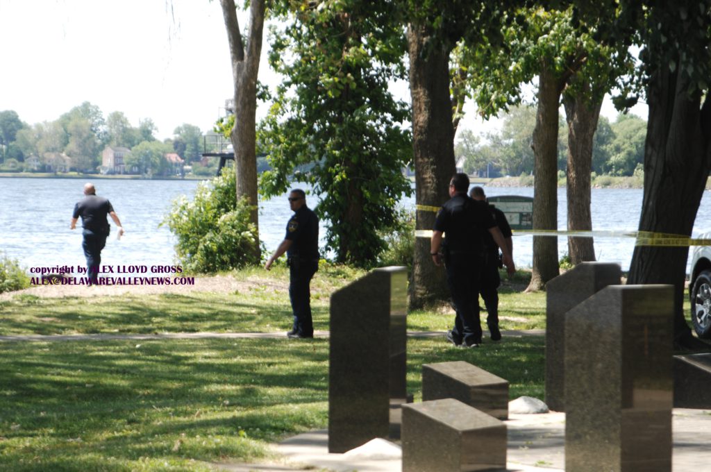 Alex Lloyd Gross Photo-Delaware Valley News.com Detectives search the wharf for evidence.