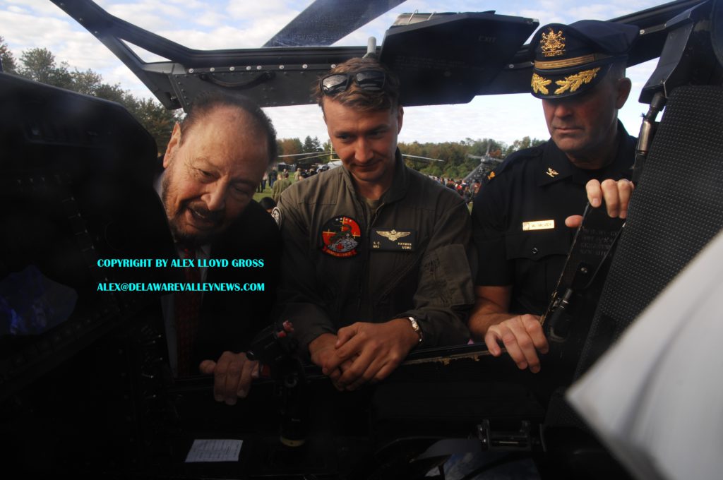 Mayor Joe and Bill McVey, Director Of Public Safety for Bensalem get a VIP tour of a Marine Helicopter.