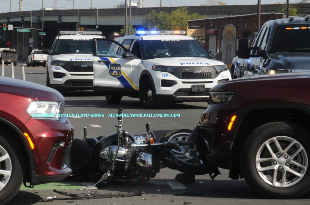 Details of what happened are preliminary and subject to change. A motorcycle was south on Aramingo Ave., when a Jeep was turning left. The two vehicles made contact , throwing the motorcyclist off the bike and into the windshield of a Dodge Durango, that was on Duncan Rd, waiting to exit onto Aramingo .