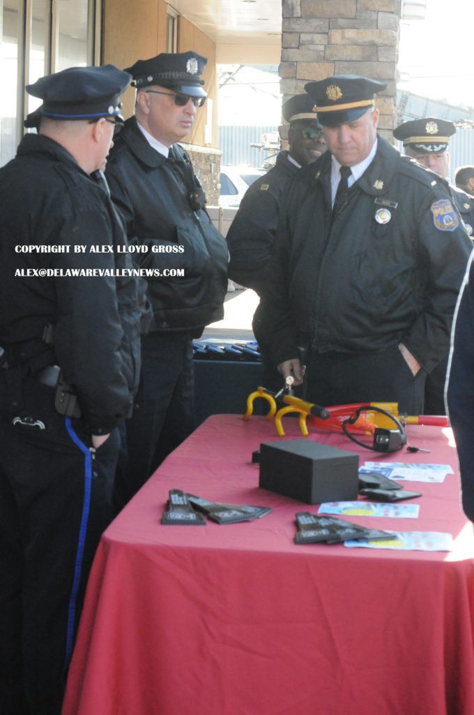 Alex Lloyd Gross Photo Delaware Valley News.com Police examine the display of auto theft prevention devices and materials.