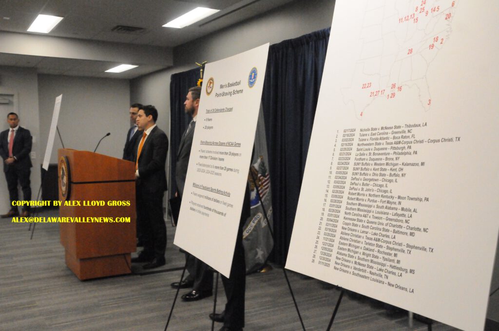 Alex Lloyd Gross Photo- Delaware Valley News.com US Attorney David Metcalf speaks to reporters.