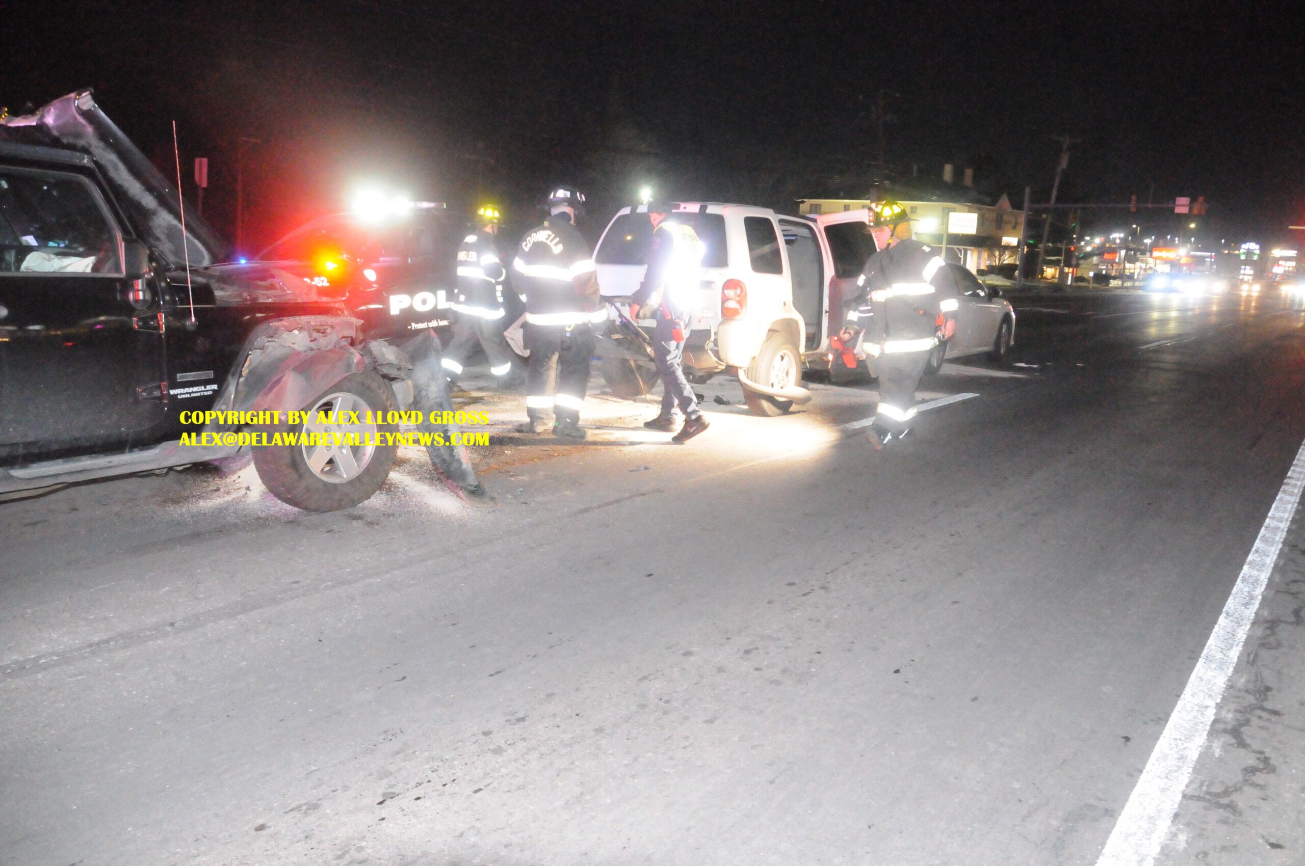 Bensalem Volunteer Fire Department was on scene taking care of hazards and blocking the road. Traffic was disrupted for about 40 minutes until two tow trucks removed the cars and cleaned the debris.