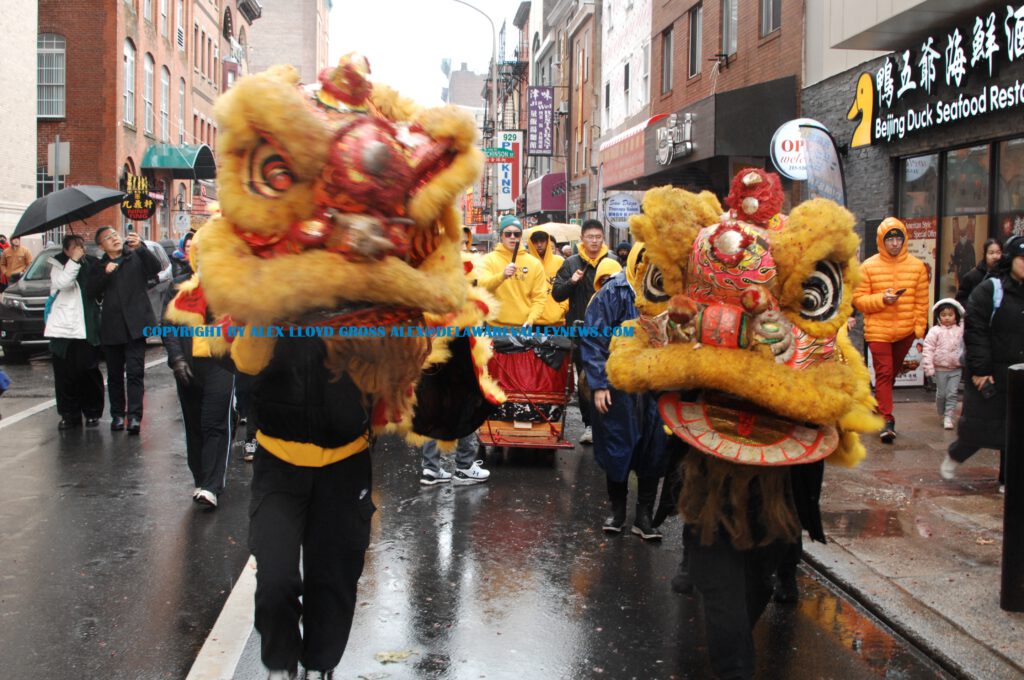 Alex Lloyd Gross Photo/ Delaware Valley News.com Two lions walk down the street in Chinatown.