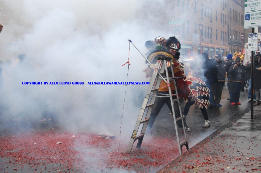 Alex Lloyd Gross Photo/ Delaware Valley News.com Two lions walk down the street in Chinatown.