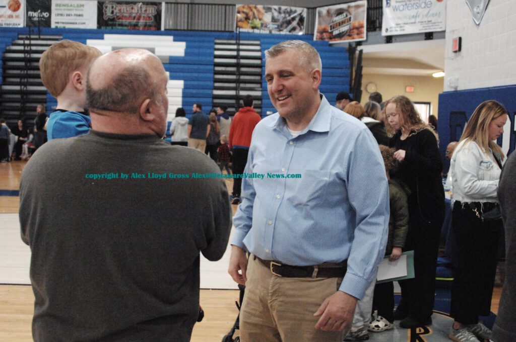 Alex Lloyd Gross Photo-Delaware Valley News.com State Senator Frank Farry speaks with a constituent.