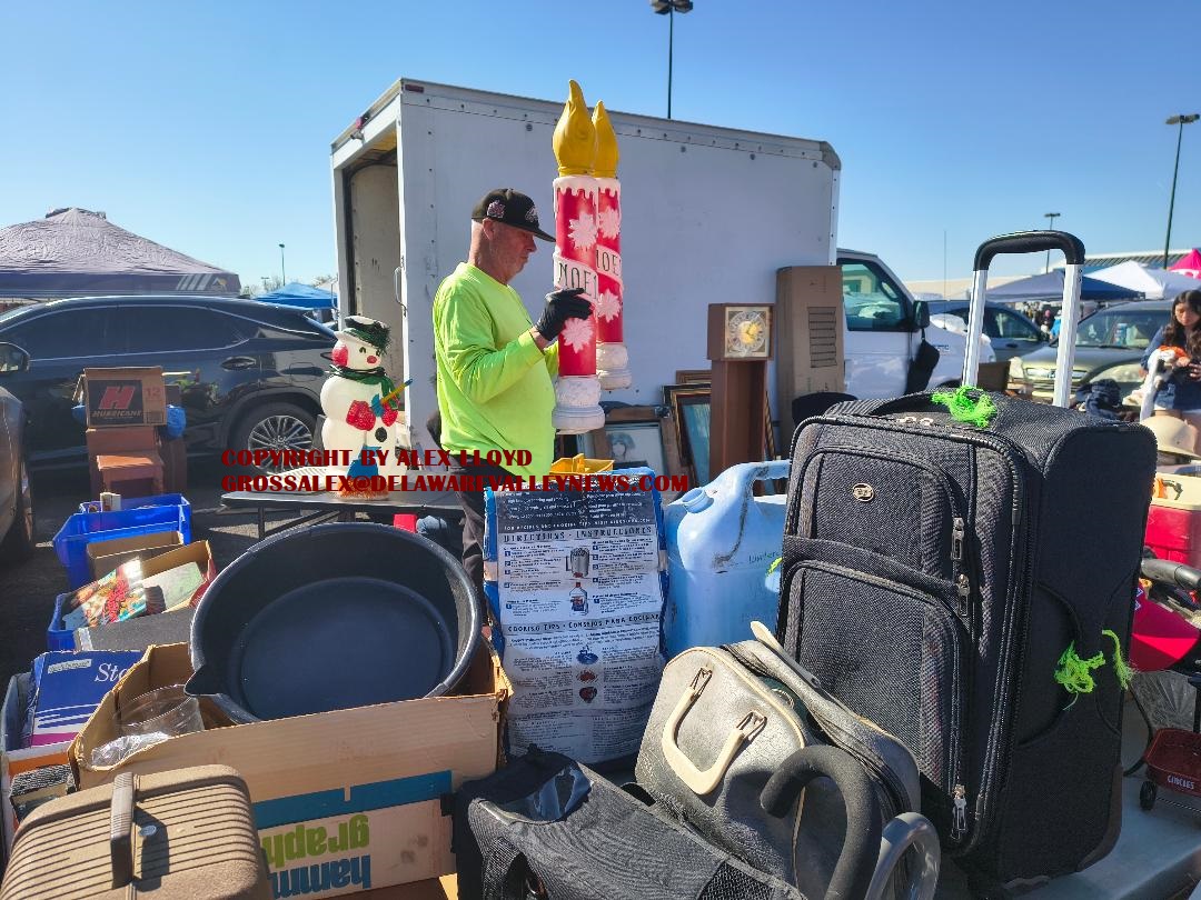 With weather in the 60’s and sunny, it’s a great day to visit a flea market. The one at Franklin Mills opens April 12 at 8:00 AM. The line of vendors starts early, they want to get in and get set up. According to Anthony Soprano, “It;s first come first serve” for vendors. They want to get to the site early because they then have to set up their booth. That takes some time. Plus early shoppers try for bargains.