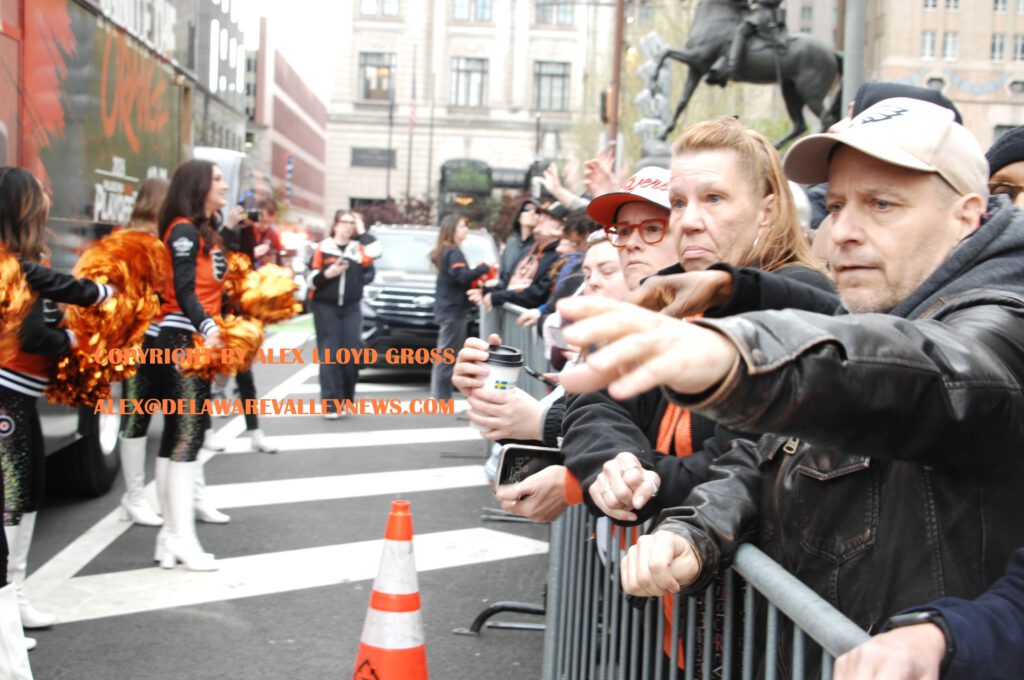 They now have a team pep rally double decker bus with a black and orange paint scheme. This bus is making rounds to different areas of the Delaware Valley. One such stop was the lunch hour on the north side of city hall.