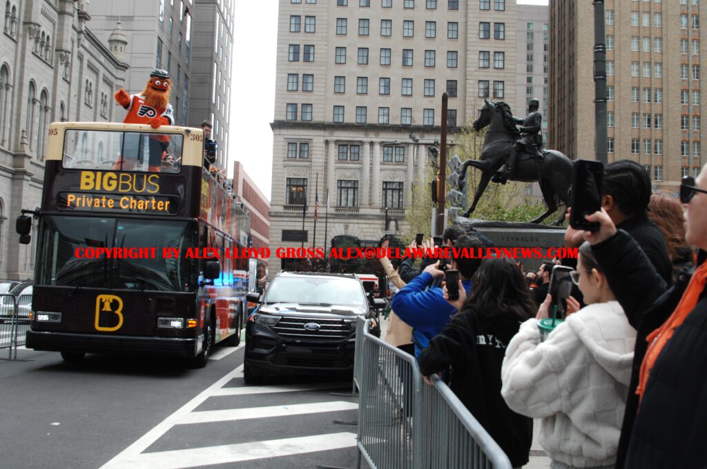 There was even a chance for people to win Flyers Playoff tickets. The bus schedule changes and it can be at any area, from Bucks County to Delco. In fact, right after the city hall rally, the bus was on it’s way to King Of Prussia.