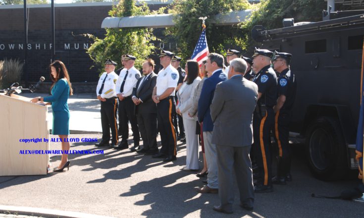Alex Lloyd Gross Photo-Delaware Valley News.com, State Rep KC Tomlinson, who represents Bensalem and Hulmeville Borough speaks during the press conference as the old SWAT vehicle is behind her. State Funding was made available to the tune of $350,000 and A new SWAT vehicle is going to be in service in Bucks County. Senator Frank…